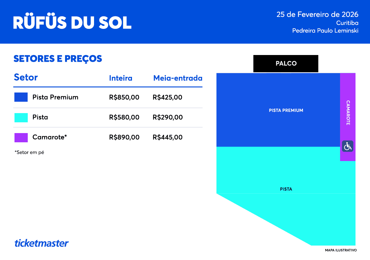 Início das Vendas: 27/08/2025 às 10h em www.ticketmaster.com.br e a partir das 11h na Bilheteria Oficial.